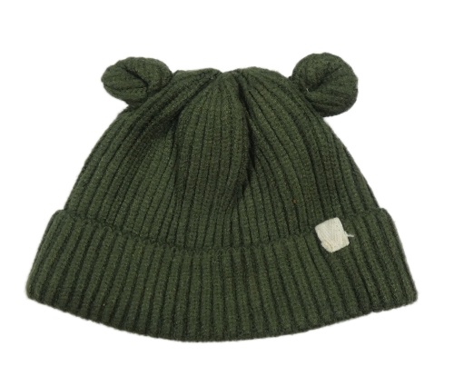 Tmavozelená rebrovaná pletená čapica s uškami Nutmeg