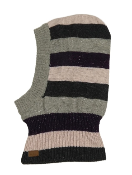 Šedo-růžovo-fialová pruhovaná pletená podšitá kukla