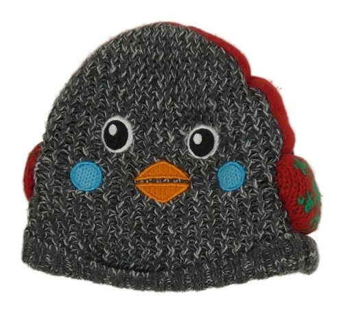 Sivo-biela melírovaná pletená podšitá čapica s vtáčikom Nutmeg