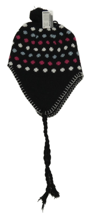 Nové - Čierno-bielo-ružovo-modrá bodkovaná á čapica s brmbolcom