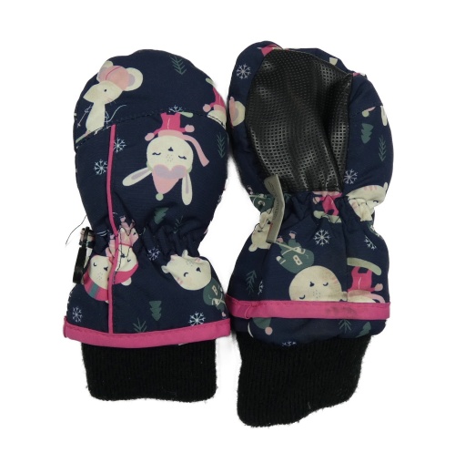 Tmavomodré zateplené palcové rukavice s králikmi