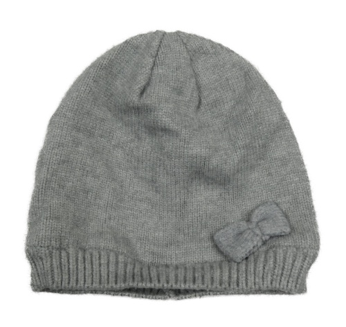 Sivá melírovaná úpletová zateplená čapica s mašlou Smile