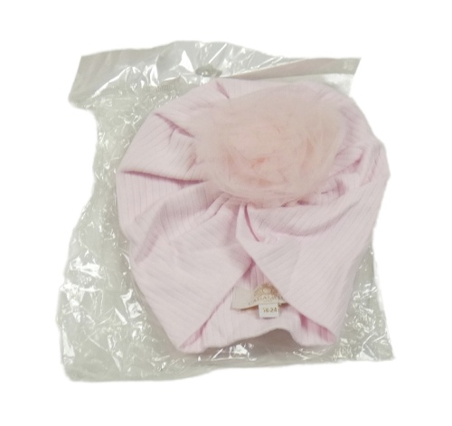 Nové - Svetloružová rebrovaná turbanová čapica s tylem Caramelo