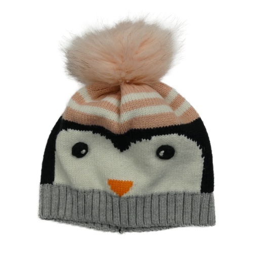 Ružovo-čierno-sivá čapica s tučňákem a brmbolcom