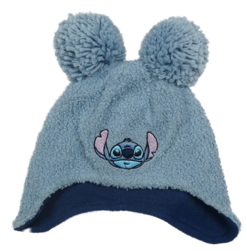 Svetlomodrá huňatá čapica so Stitchem a bambulemi George