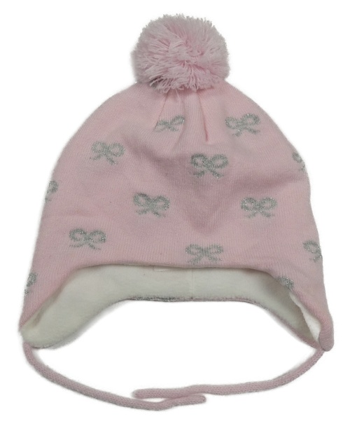 Svetloružová čapica s mašličkami a brmbolcom C&A
