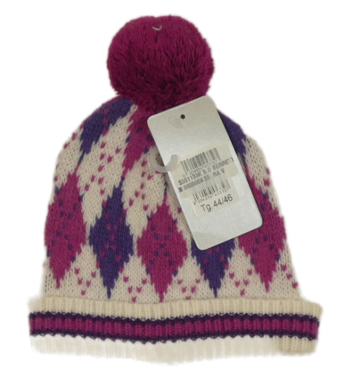 Nové - Smetanovo-fialovo-fuchsiová vzorovaná vlnená čapica s brmbolcom