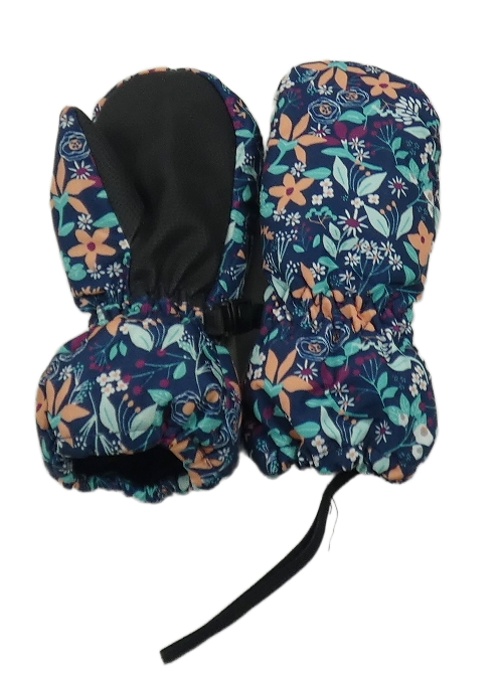 Tmavomodré šusťákové zateplené palcové rukavice s kvietkami lupilu