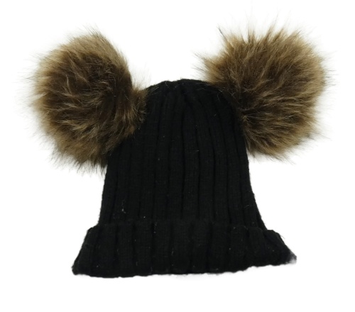 Čierna pletená čapica s bambulemi