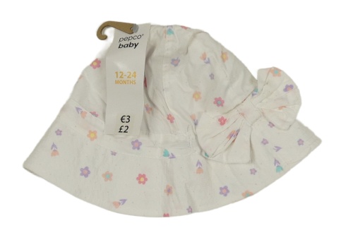 Nové - biely plátenný klobúk s kvietkami a mašlou so cute