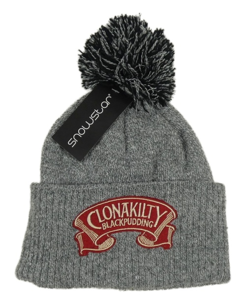 Nové - sivá melírovaná pletená čapica s výšivkou a brmbolcom Beechfield