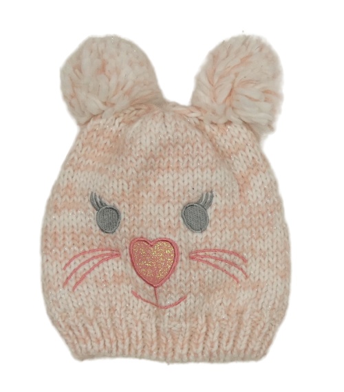 Nové - Ružovo-biela melírovaná čapica so zvieratkom a bambulemi Topomini