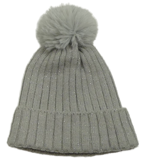 Sivá trblietavá rebrovaná čapica s brmbolcom