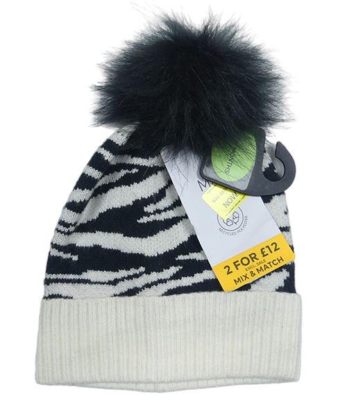 Nové - bielo-čierna vzorovaná čapica s brmbolcom M&S