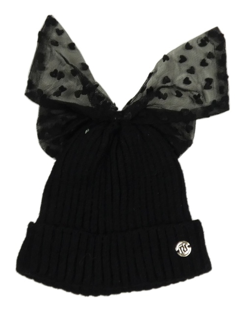 Čierna rebrovaná úpletová čapica s tylovou mašlou so srdiečkami RIVER ISLAND