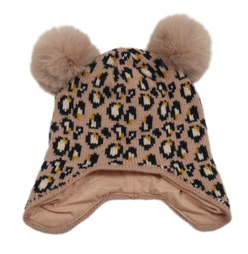 Staroružová vzorovaná pletená čapica s bambulemi George