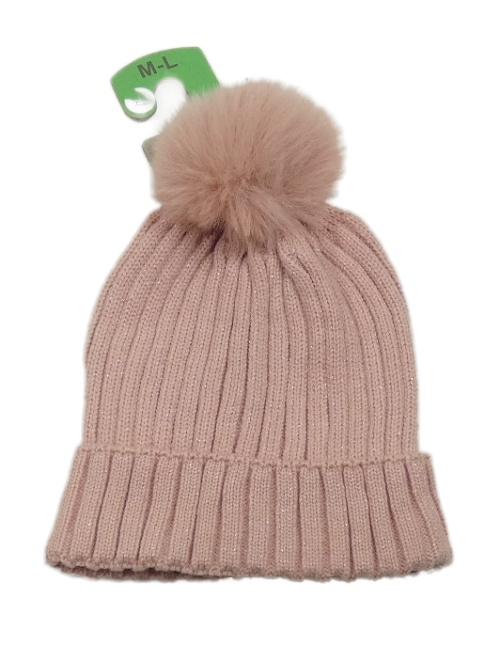 Nové - Svetloružová trblietavá čapica s brmbolcom Primark