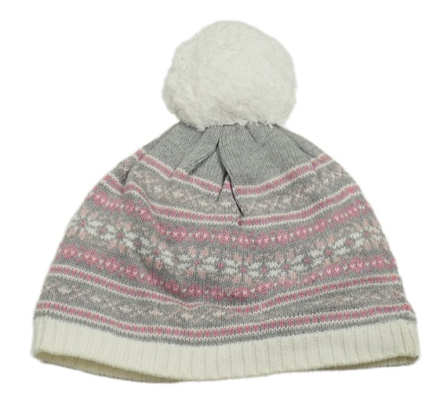 Sivo-ružovo-biela vzorovaná čapica s brmbolcom