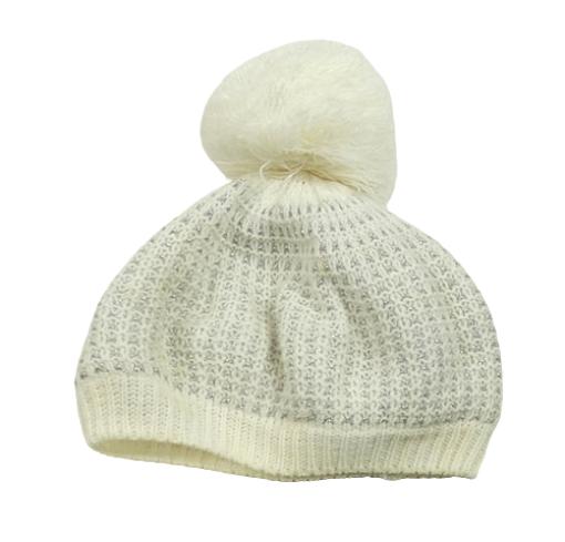 Smotanová trblietavá pletená čapica s brmbolcom