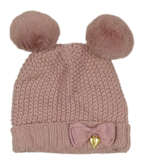 Ružová trblietavá čapica s mašlou a bambulemi