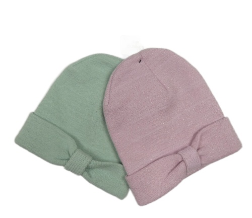Nové - 2x pletená čepice - světlezelená + růžová třpytivá Dunnes
