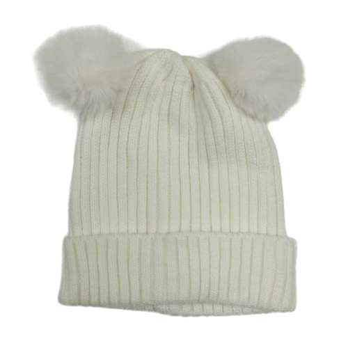 Smotanová rebrovaná pletená čapica s bambulemi Primark