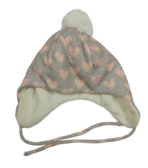 Sivá bodkovaná á čapica so srdiečkami a brmbolcom