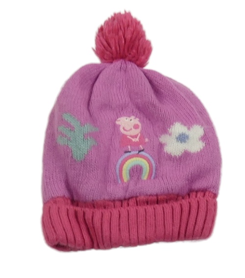 Tmavoružová pletená čapica s Peppou a brmbolcom M&S