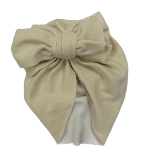 Svetlobéžová turbanová čapica s mašlou