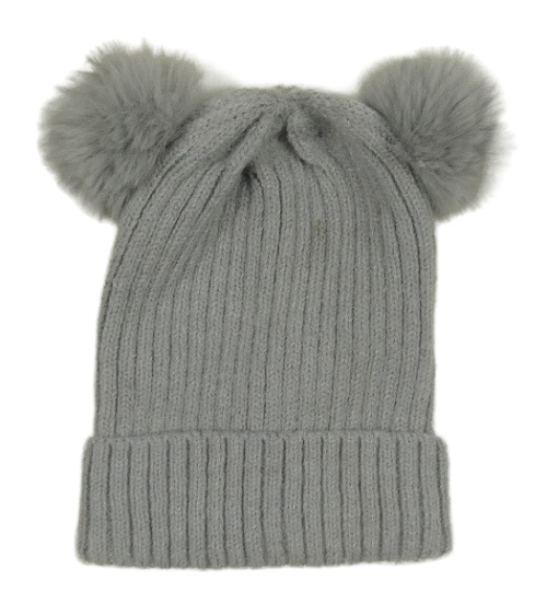 Sivá rebrovaná pletená čapica s bambulemi Primark