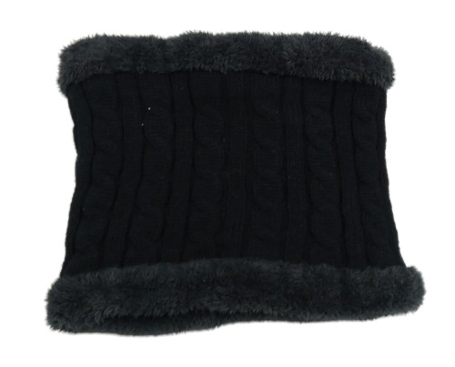 Černý žebrovaný vzorovaný pletený zateplený nákrčník