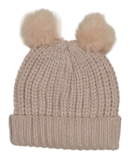 Svetloružová trblietavá čapica s bambulemi Matalan