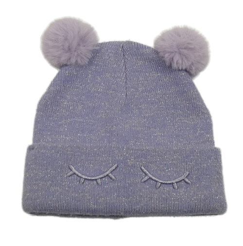 Fialová trblietavá čapica s očima a bambulemi H&M vel.92-104