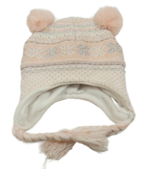 Svetloružová -biela vzorovaná pletená čapica s bambulkami Topomini