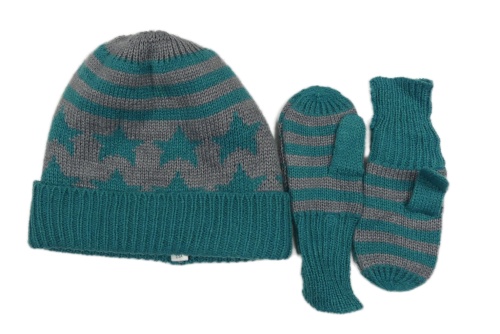 2set - Zeleno-šedá vzorovaná pletená čepice + palcové rukavice