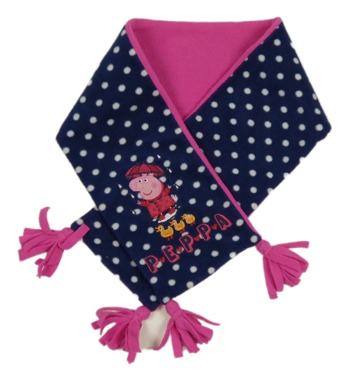 Tmavomodro-ružovo-biela bodkovaná á fleecová šál s Peppou a strapcemi M&S