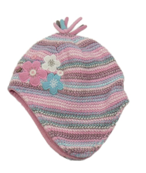 Ružovo-modro-sivá pruhovaná čapica s kvetmi a strapcemi M&Co.