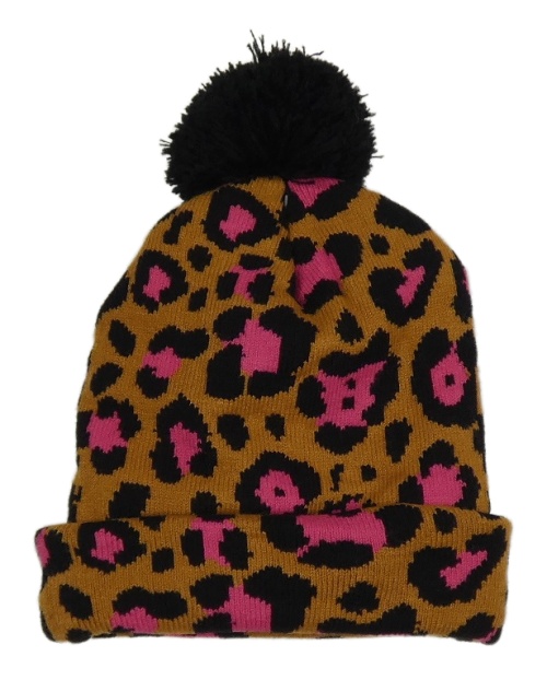 Hnedo-čierno-tmavoružová vzorovaná čapica s brmbolcom ZEEMAN