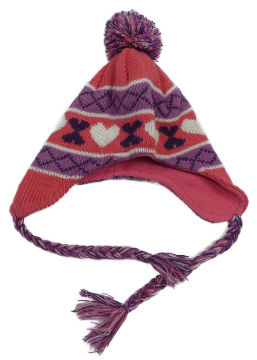 Tmavorůžovo-levandulová vzorovaná čapica s brmbolcom Kids