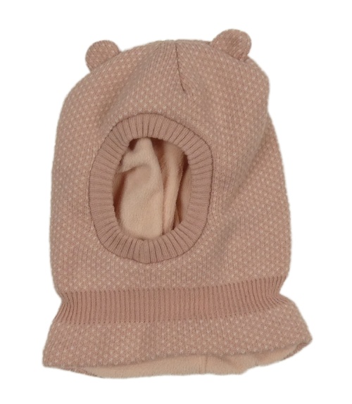 Pudrová vzorovaná pletená kukla s uškami Topomini