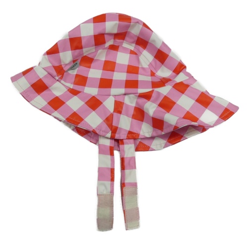 Červeno-ružovo-biely kockovaný nepromokavý klobúk NORDJORN