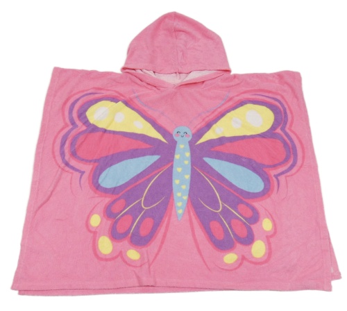 Ružové froté osuškové pončo s motýlom a kapucňou