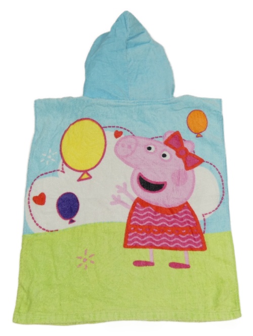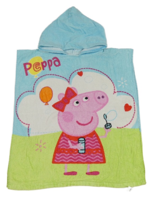 Světlemodro-zelená froté pončo osuška s Peppa Pig a kapucňou