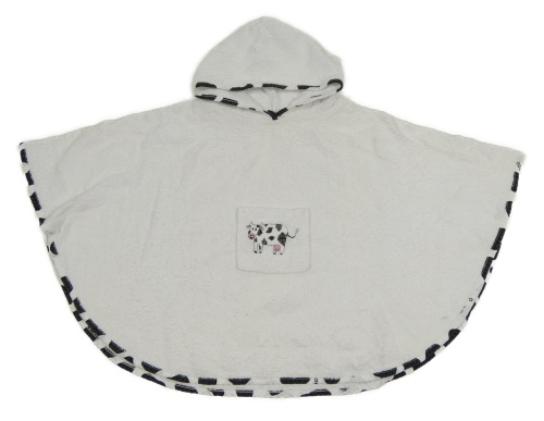 Biele froté osuškové pončo s kravičkou a kapucňou