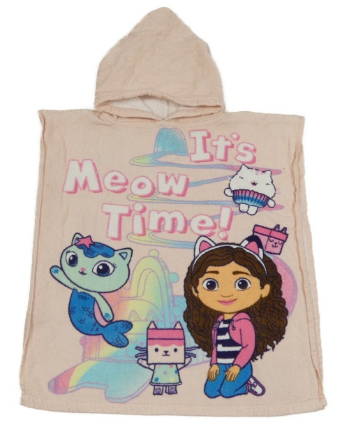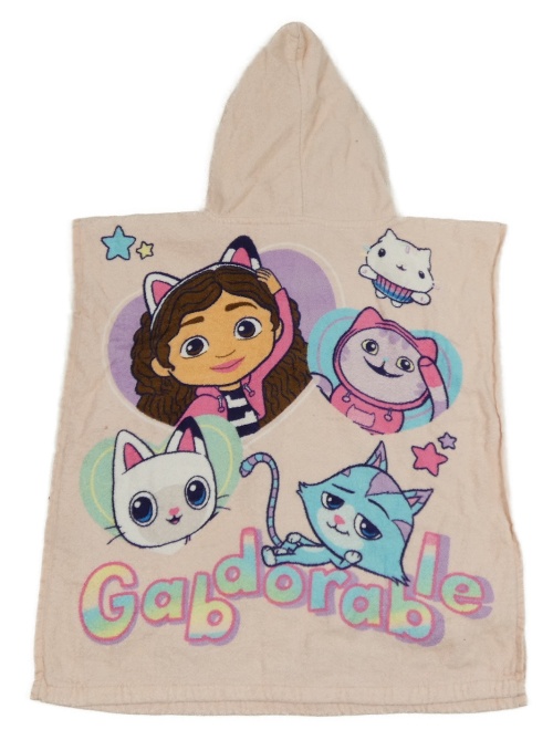 Svetloružové froté osuškové pončo s Gabinou a kapucňou