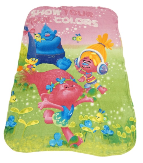 Zeleno-ružová chlpatá deka s Trolls