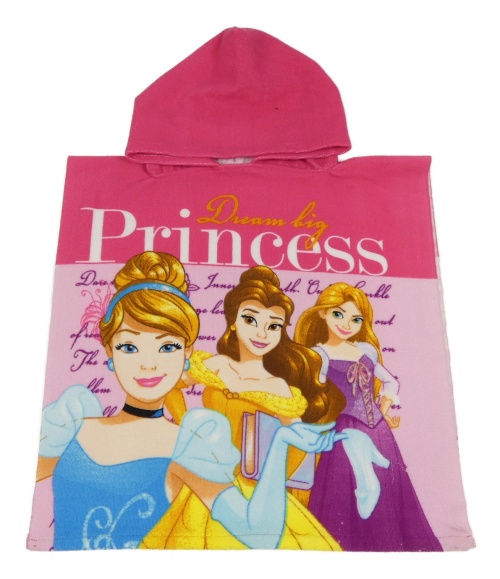 Ružovo-svetloružové froté osuškové pončo s princeznami Disney