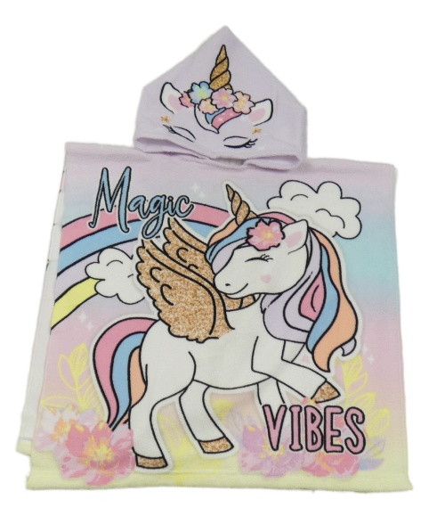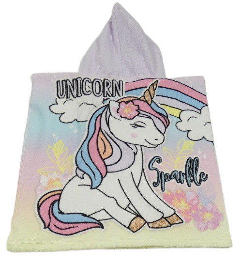 Lila-žlté osuškové pončo s jednorožcom a kapucňou