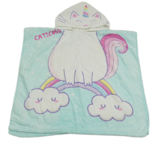 Mátová froté pončo osuška s kočičkou -jednorožec a kapucňou HELLO SUMMER