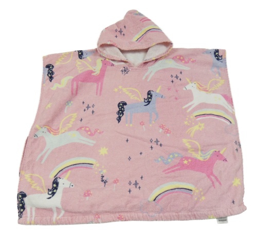 Svetloružové froté osuškové pončo s jednorožcami a kapucňou